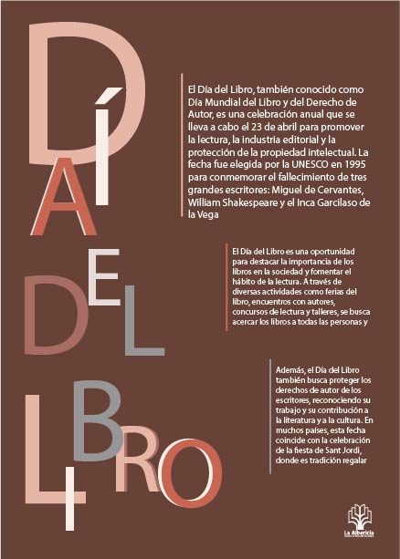 E cartel que está diseñado para promocionar y recordar la importancia del Día del Libro, una fecha en la que se celebra la literatura y se fomenta el hábito de la lectura.